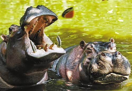 值得一提的是,大河马还是一种非常聪明的动物。在野外,它们会通过声音和动作进行沟通,共同应对各种挑战。而在动物园里,它们更是学会了各种表演技巧,为游客们带来了无尽的欢乐。